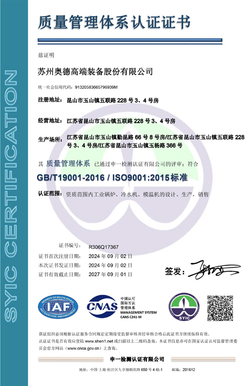 10月奧德昆山平謙廠區(qū)投入生產(chǎn) 成立鍋爐事業(yè)部